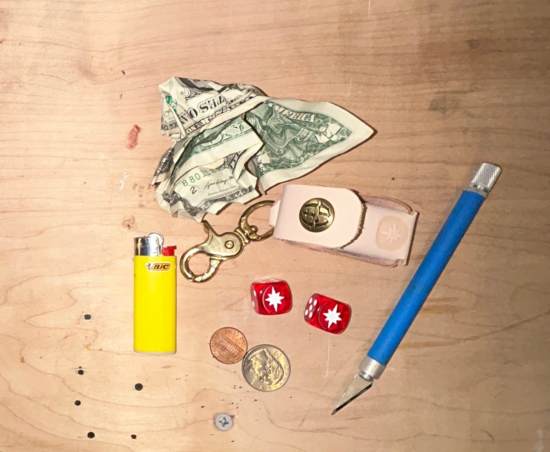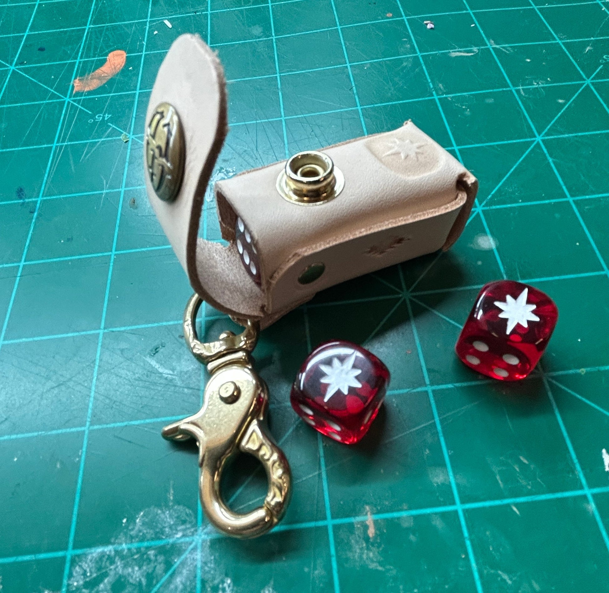 Custom, extremely limited run of 100 sets of three (3) dice with and-tooled leather carrying pouch. Design and crafted by Wayne Kong - (ltlco.bigcartel.com)