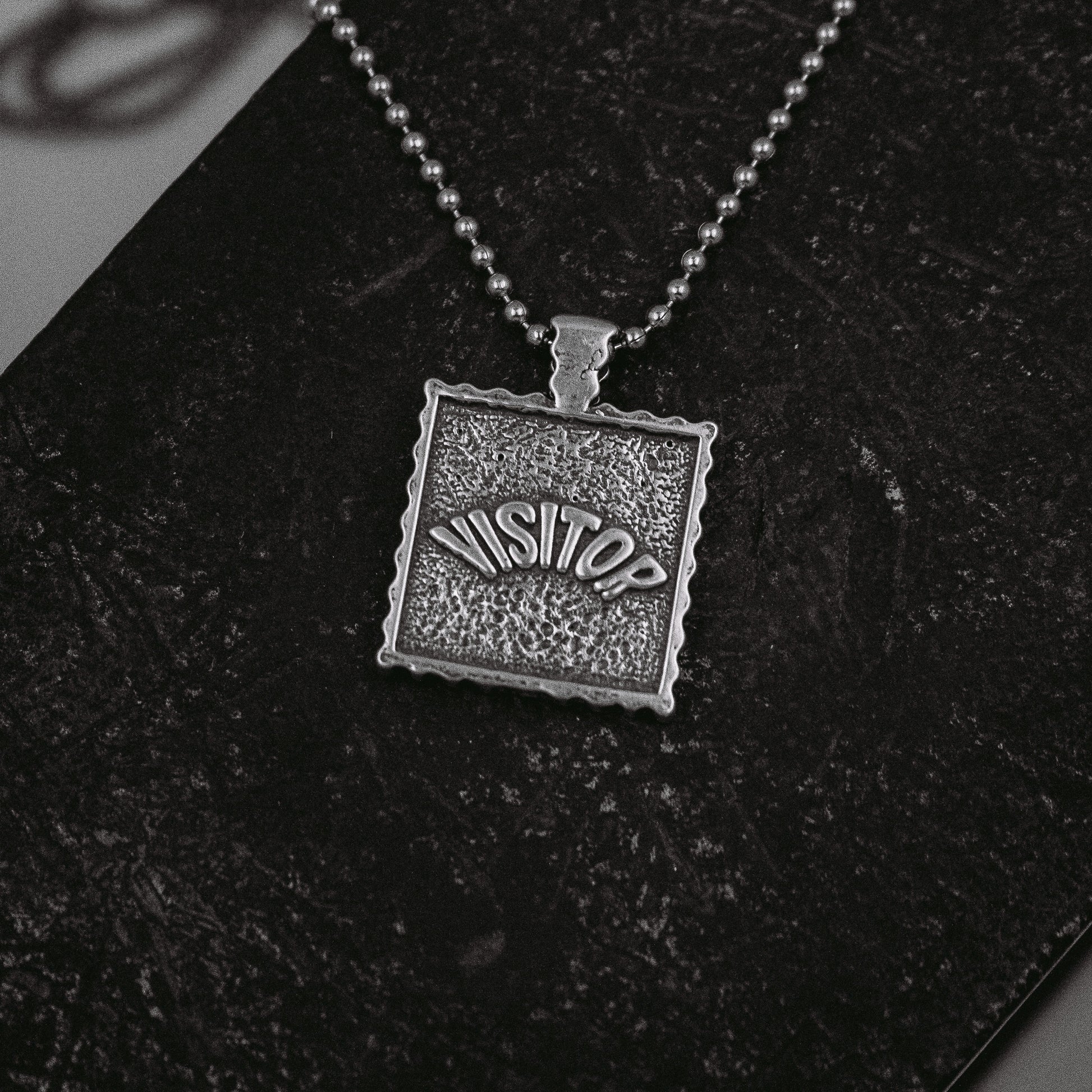The reverse side is adorned with the word "VISITOR" set in the shape of an alien craft.